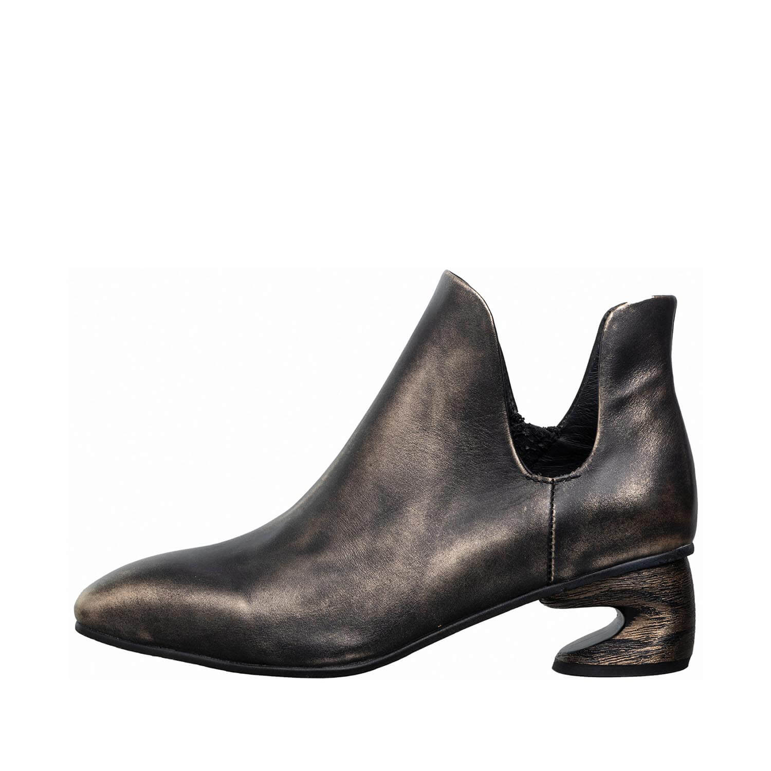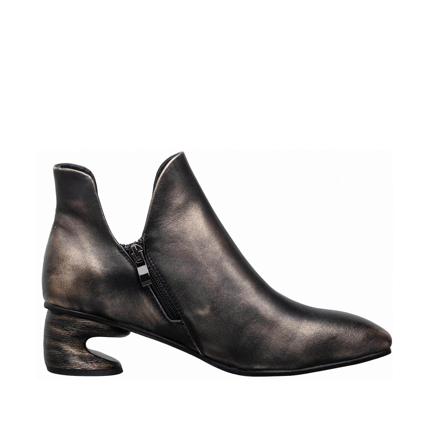 Cutout leather ankle boots block heel - decorative cutout detail shown above