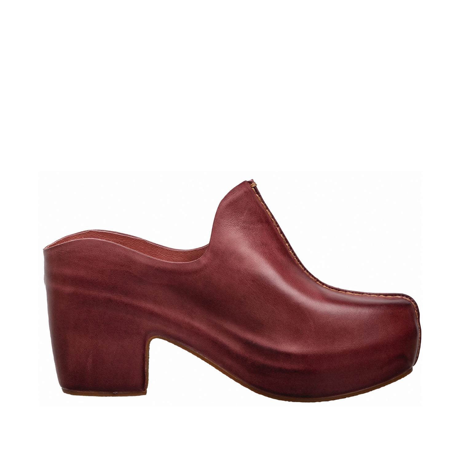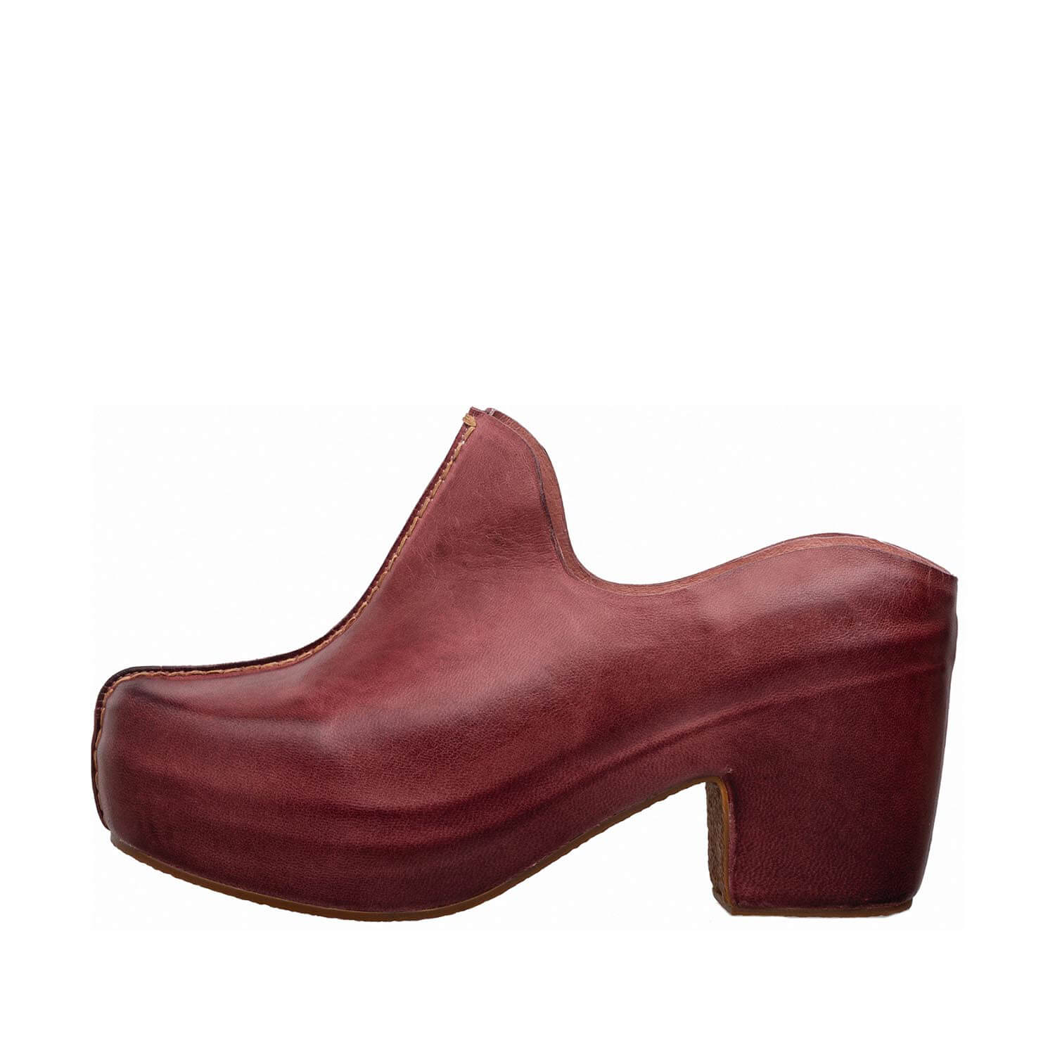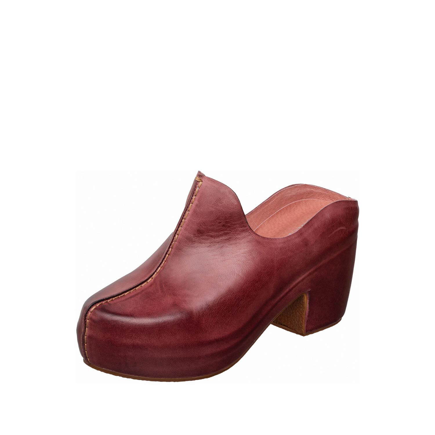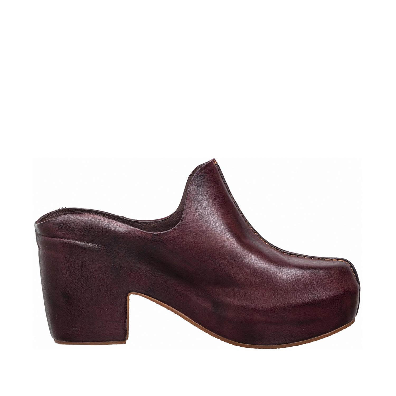 Leather platform clogs block heel slip on - oiled leather finish shown above