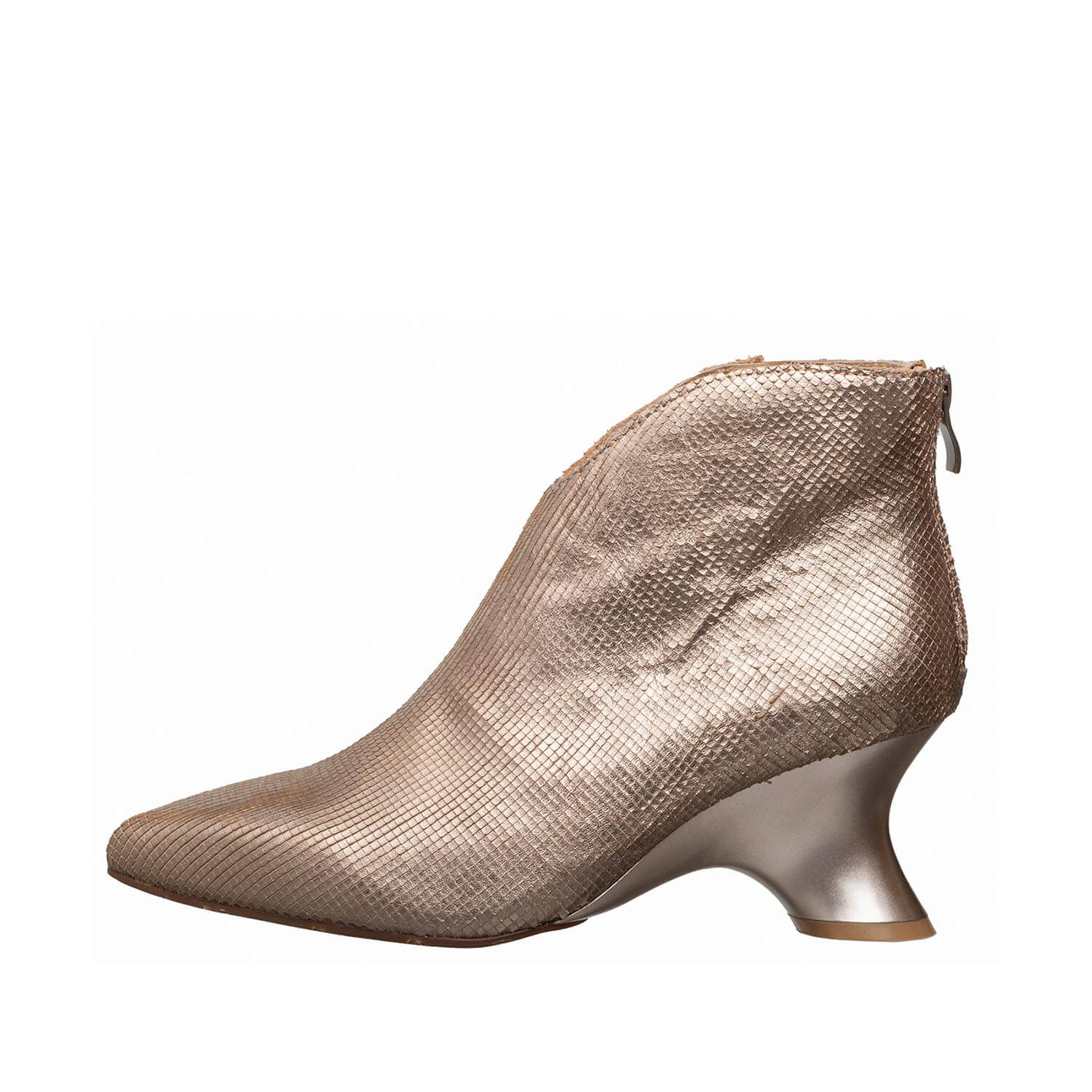 Metallic ankle booties sculptured heel v cut - lustrous metallic finish and sculptured heel shown above