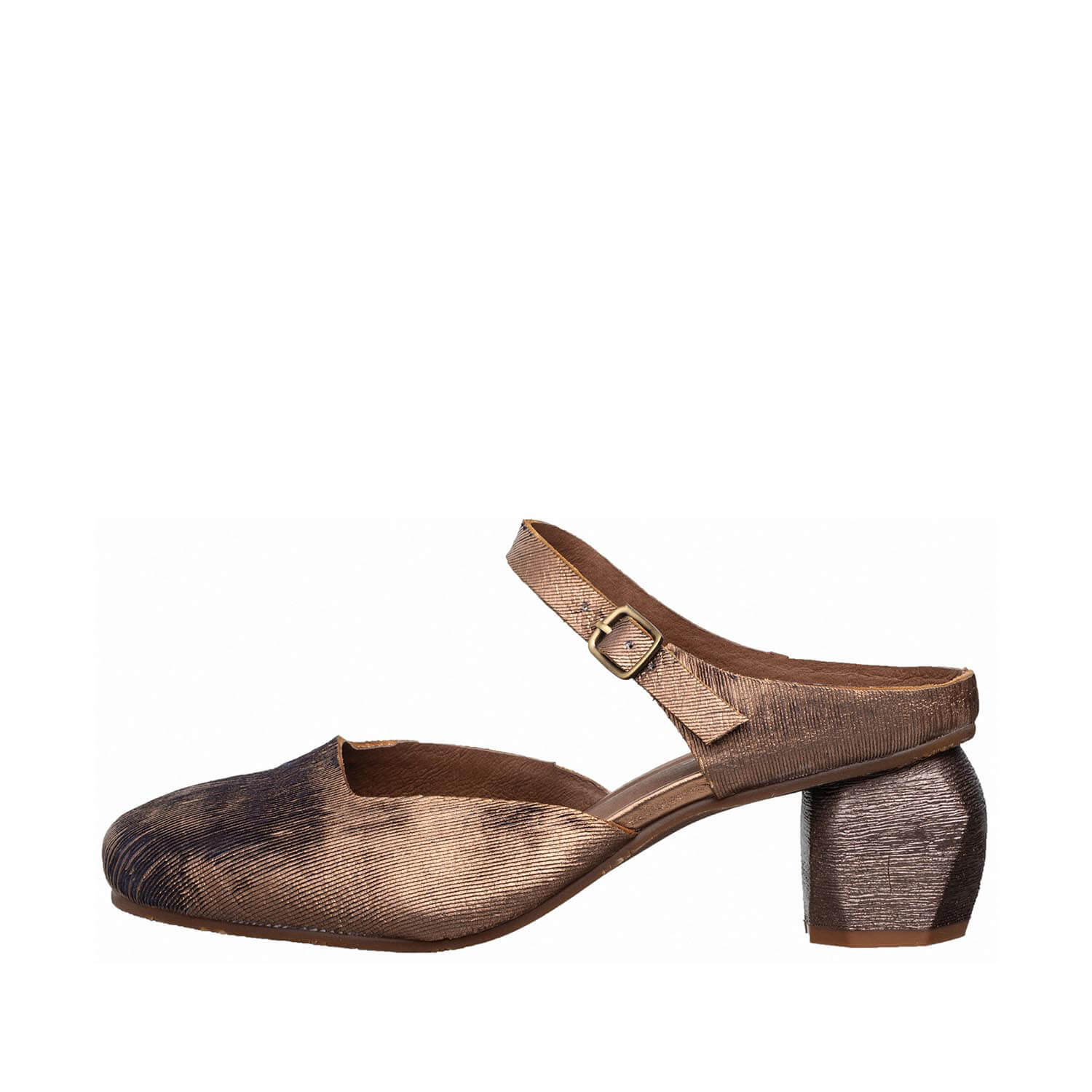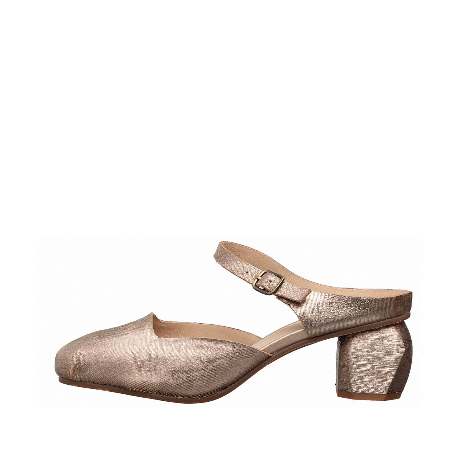 Metallic mary jane pumps ankle strap block heel - dual strap detail shown above