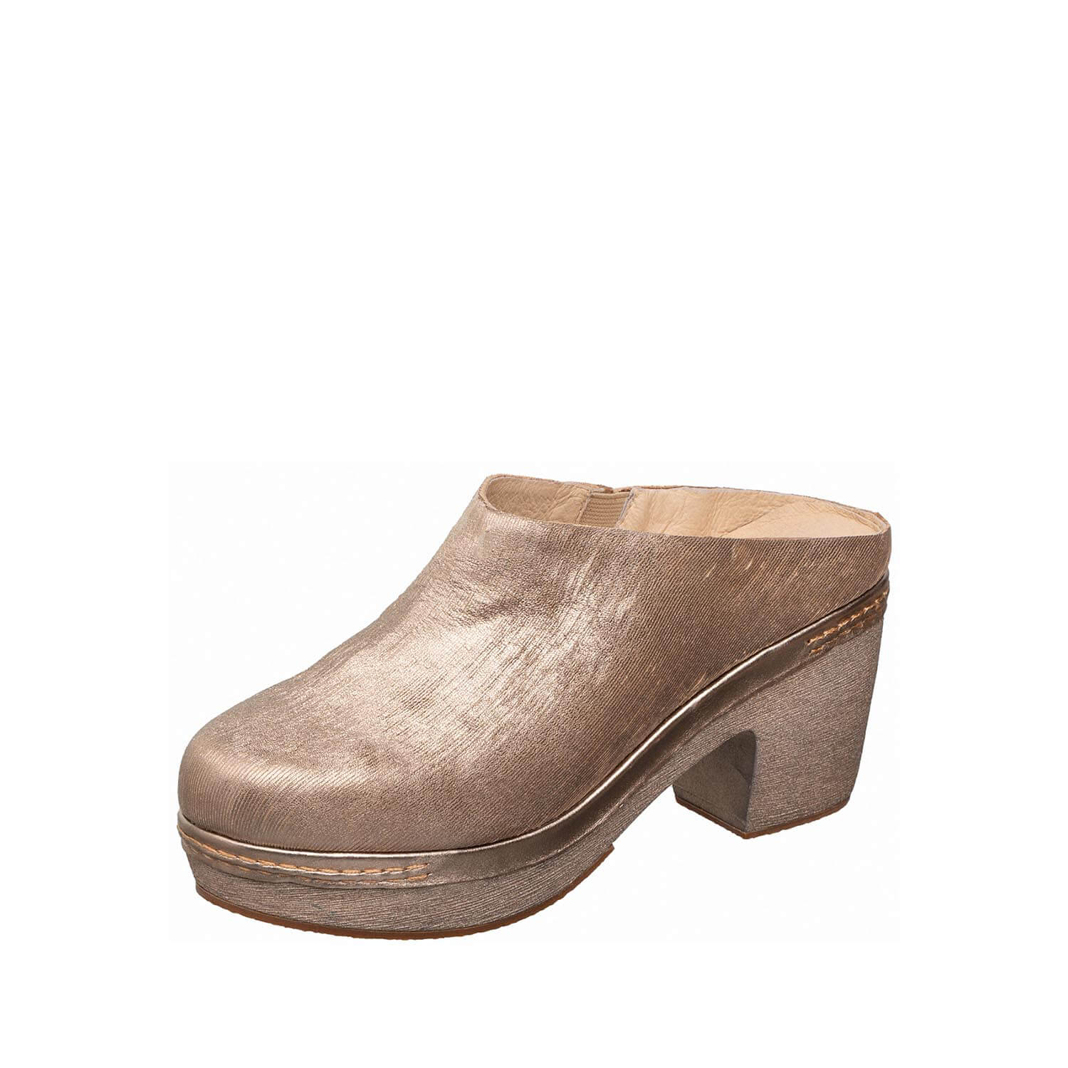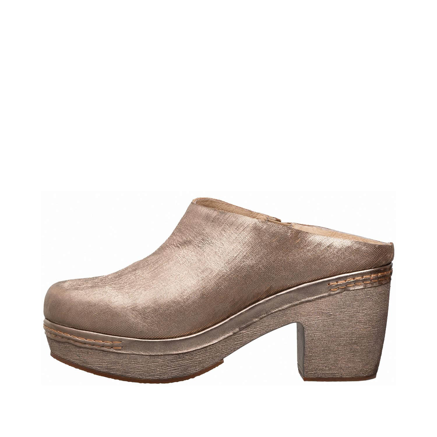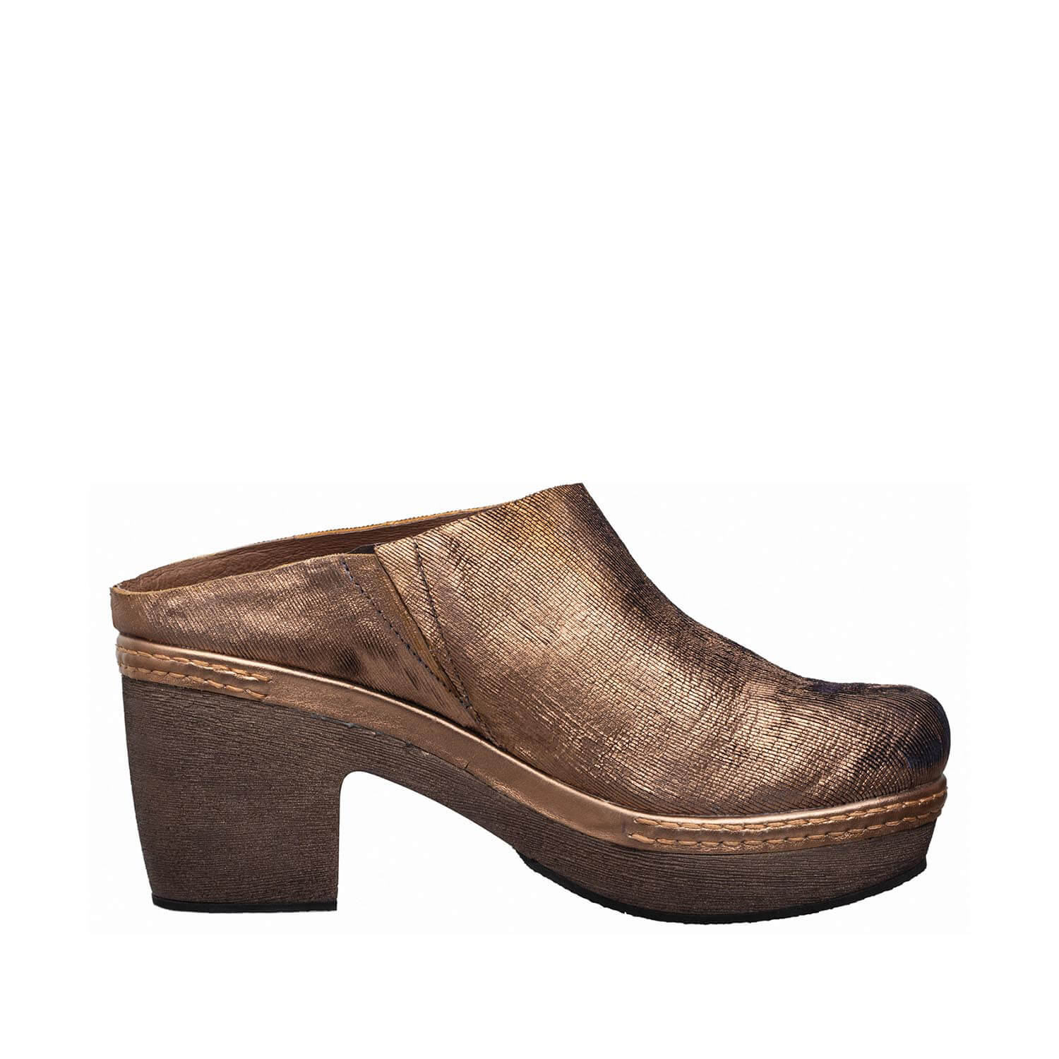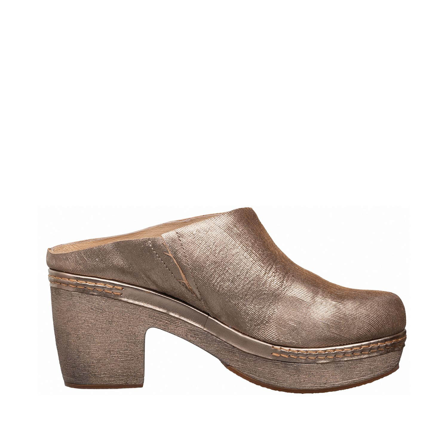 Metallic platform clogs block heel slip on - lustrous metallic finish shown above