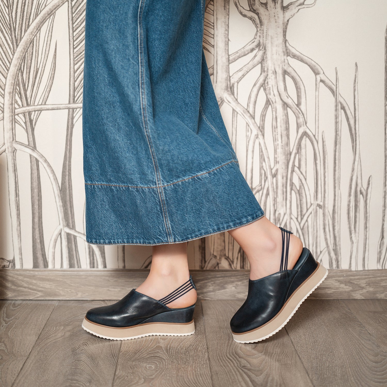 Platform wedge mules ankle tie strap - ankle tie detail shown above