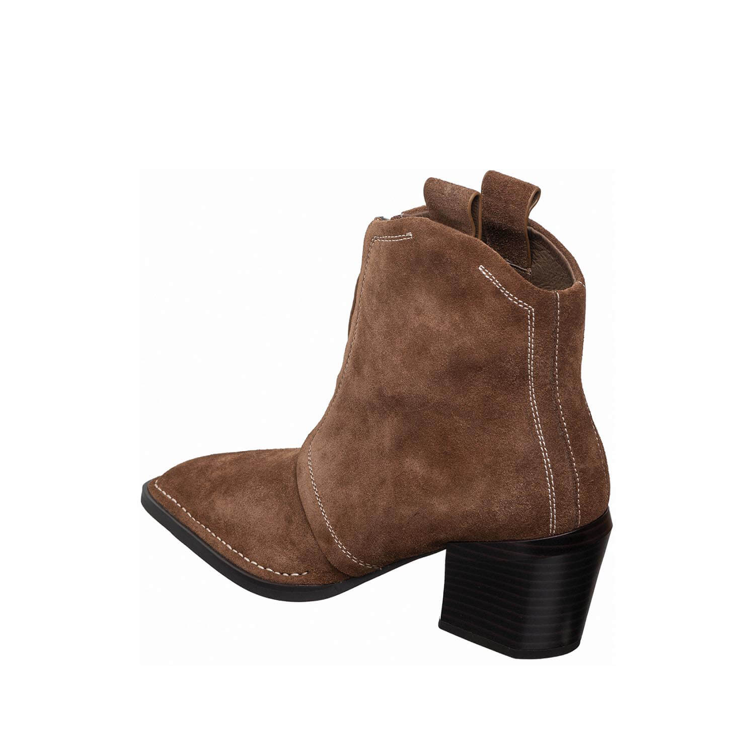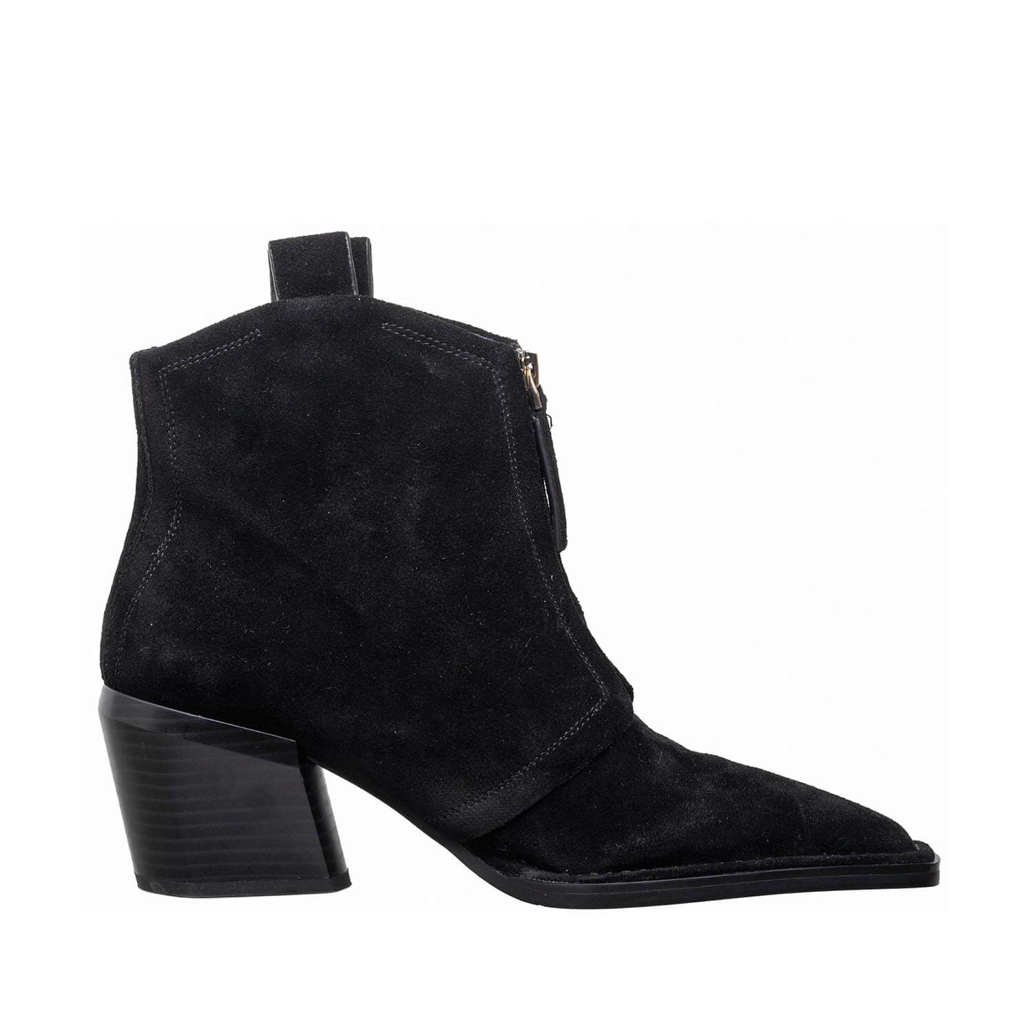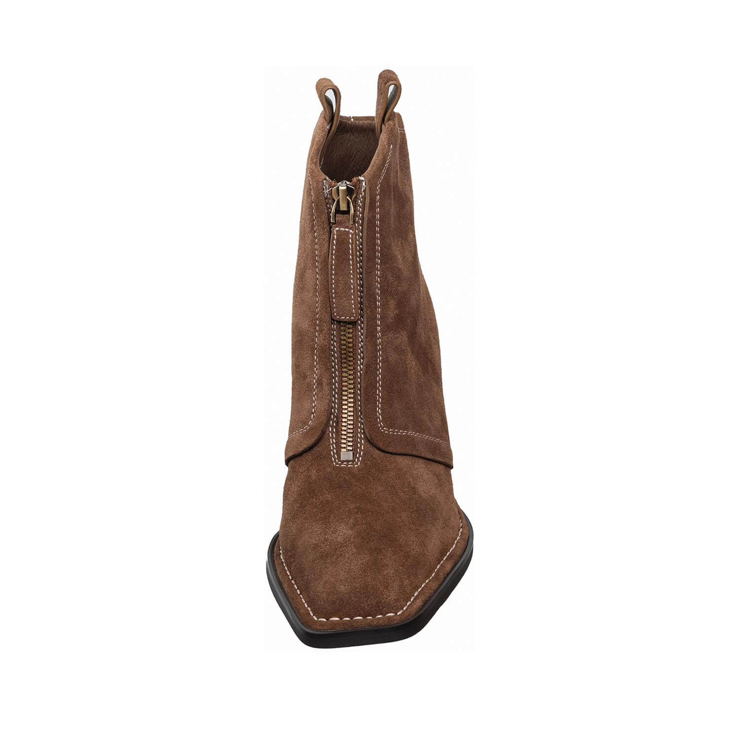 Suede ankle boots front zip square toe - distinctive front zipper detail shown above