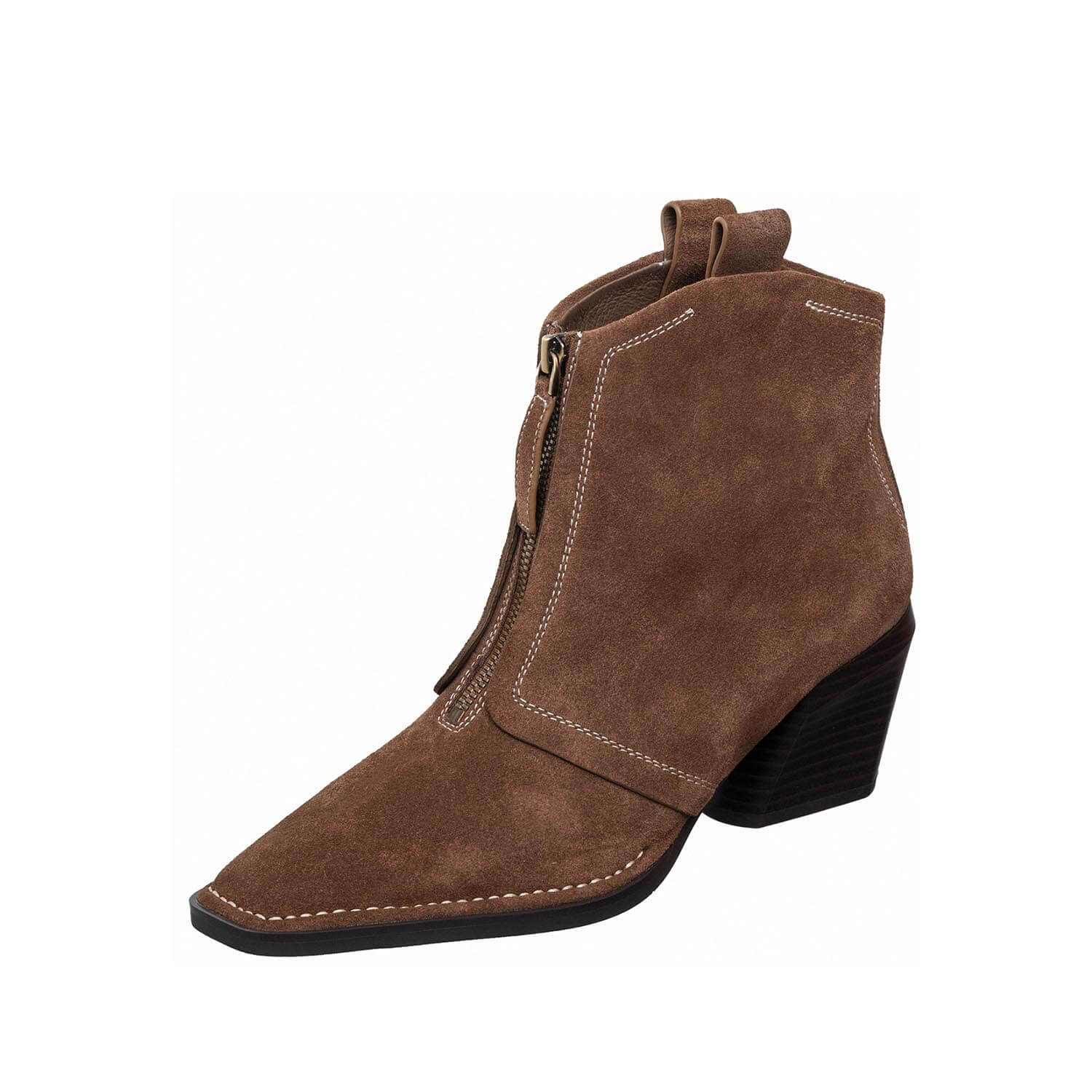 Experience innovative design with these suede ankle boots front zip square toe, featuring a distinctive front zipper placement that creates a bold focal point. The soft distressed suede upper showcases the modern square toe silhouette while the unexpected front zip adds both functional convenience and eye-catching detail. These versatile ankle boots combine a comfortable low heel with cushioned insoles, delivering all-day wearability perfect for creative professionals and style enthusiasts. The unique front zipper not only provides easy access but also creates a striking vertical line that elongates the foot. Perfect for those who appreciate unconventional design elements that make a subtle yet sophisticated statement.