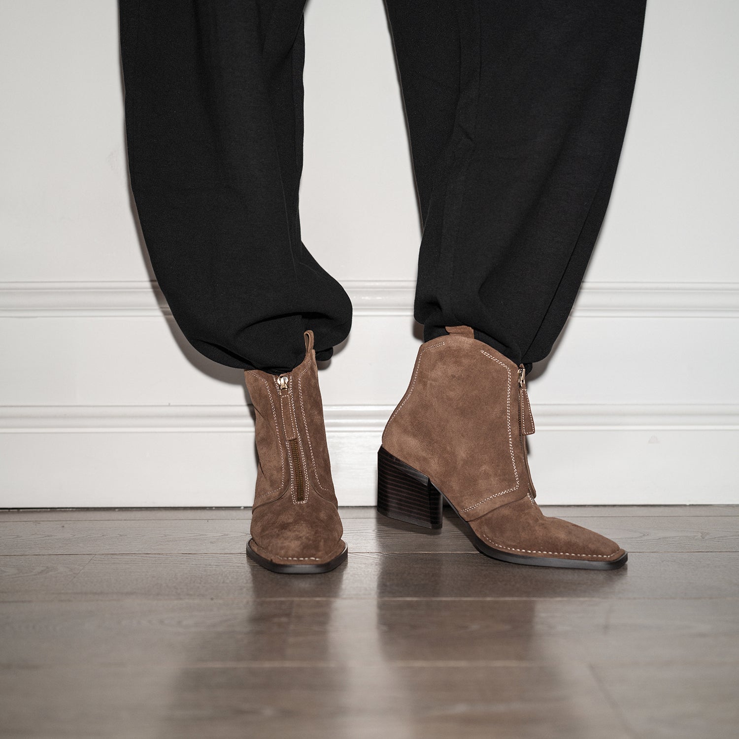Suede Ankle Boots Front Zip Square Toe - FAQ