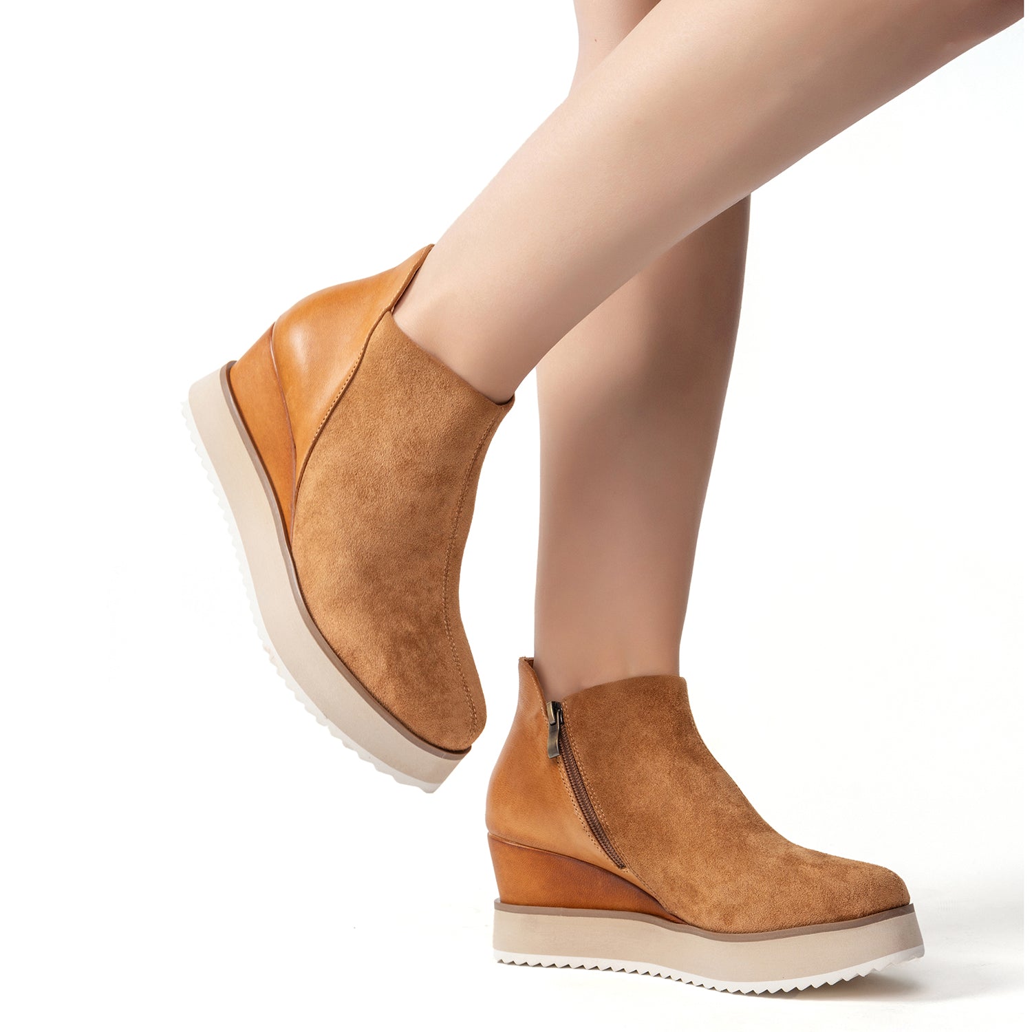 Step into effortless comfort with these suede wedge ankle booties elastic side panel, featuring convenient elastic goring that provides flexibility and easy pull-on access. The premium suede upper combines with strategically placed elastic side panels that stretch to accommodate your feet while maintaining a sleek, streamlined silhouette. These versatile ankle booties showcase a stable wedge heel that delivers comfortable elevation perfect for all-day wear without the pressure of traditional heels. The elastic panels not only ensure a customized fit but also eliminate the need for zippers or buckles, making these booties ideal for busy mornings. Perfect for those who value the convenience of slip-on styling combined with the sophisticated look of wedge ankle boots.