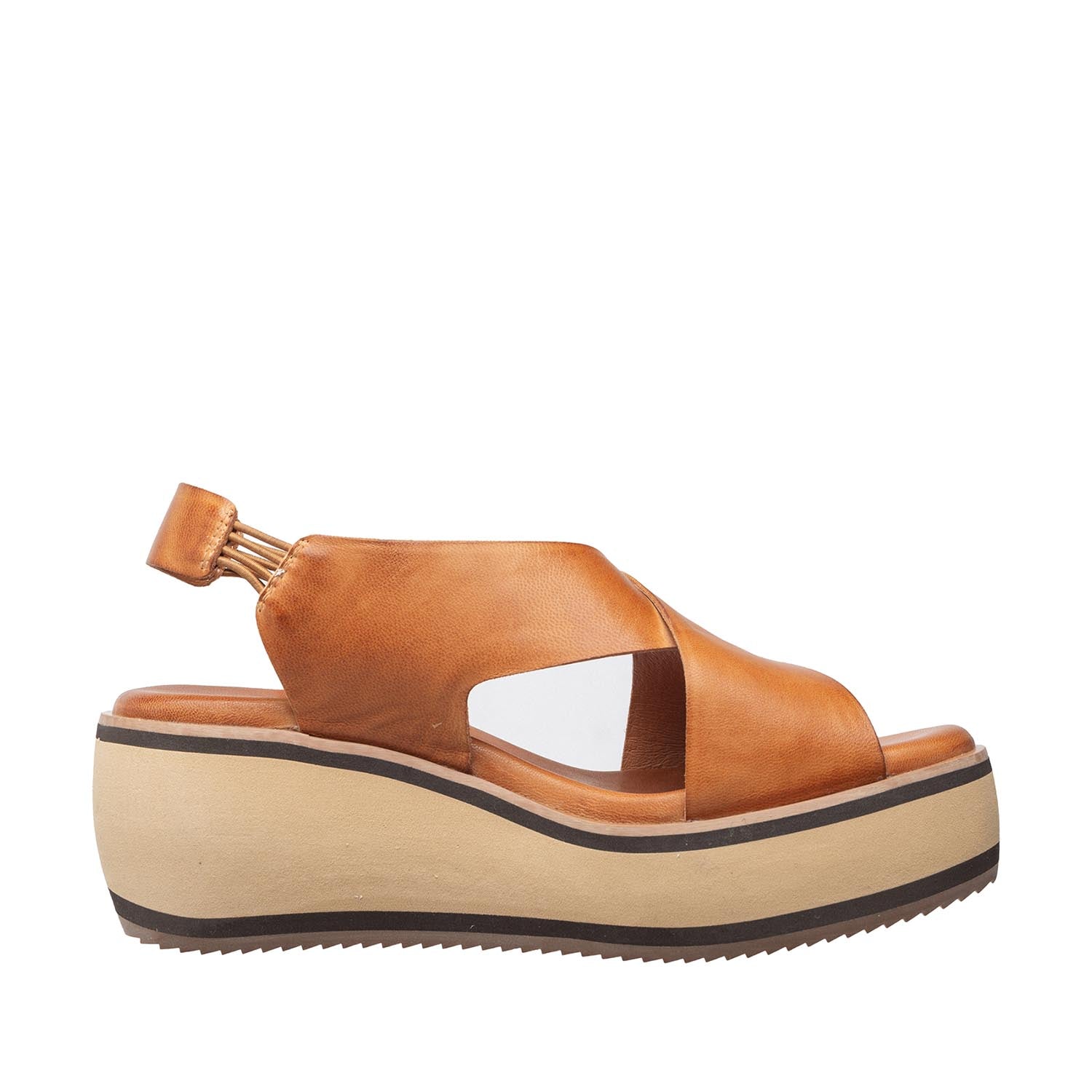 Metallic slingback platform wedge with European craftsmanship and cushioned all-day support.