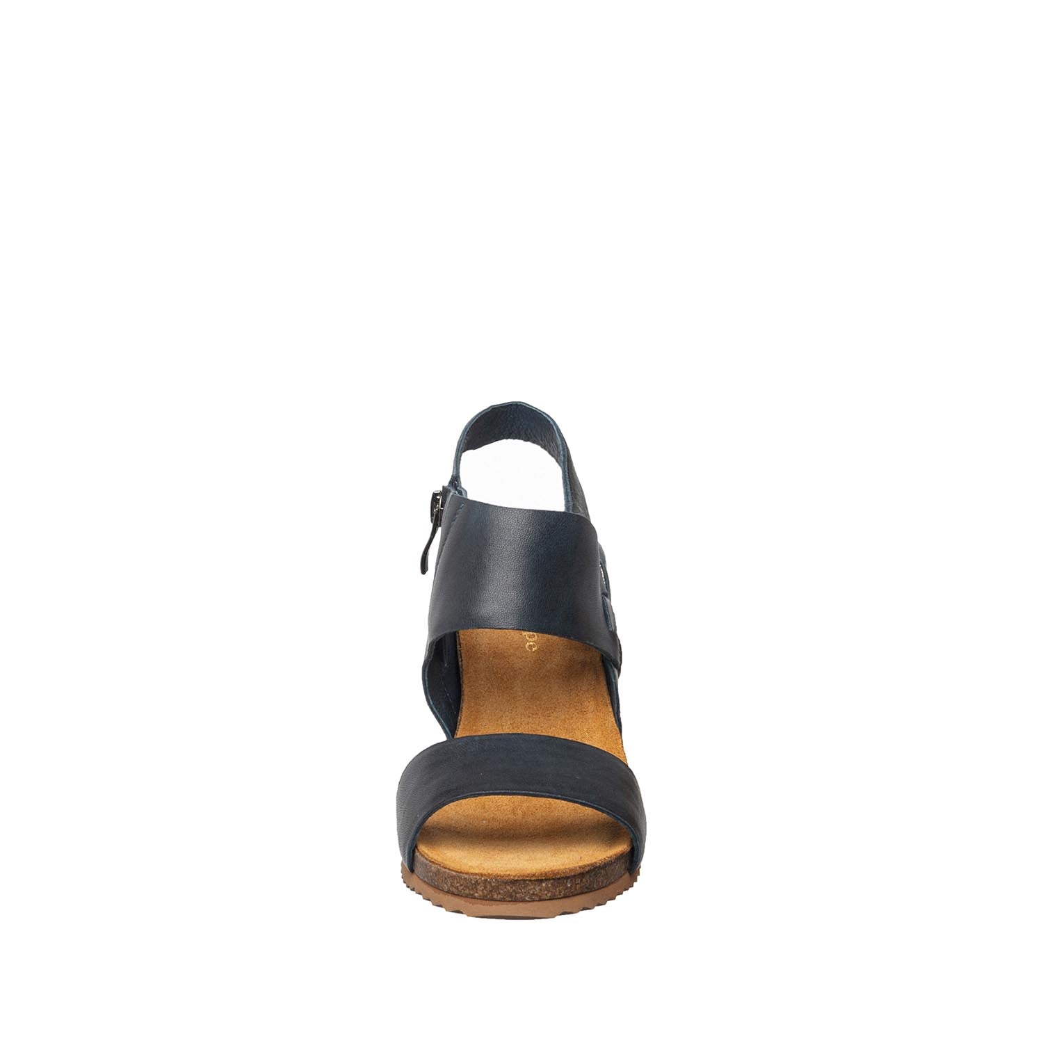 Cross-strap leather wedge with cushioned footbed for refined all-day ease.