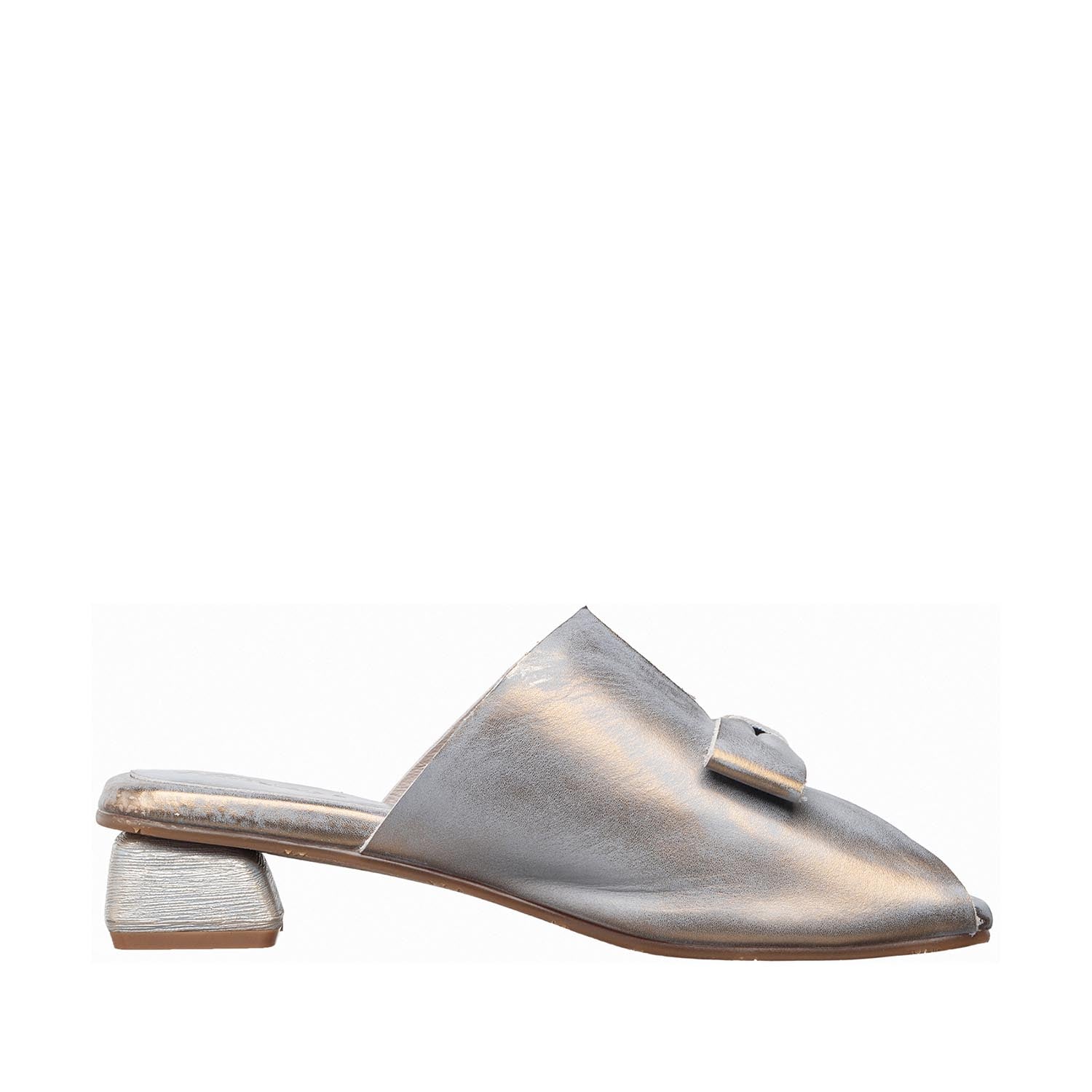 The B02 Leigh brings womens metallic leather bow mules low block heel chic comfort to every step. Crafted from fine quality aqua-toned metallic leather with a refined bow detail, these handcrafted mules sit on a 1.0 inch block heel that provides a touch of height while keeping you firmly in the comfort zone. Clean and simple lines define this classic silhouette, and the slip-on design moves effortlessly from daytime errands to relaxed evening plans. The result is all-day wearability rooted in European craftsmanship, paired with a metallic finish that makes your foot feel right at home.