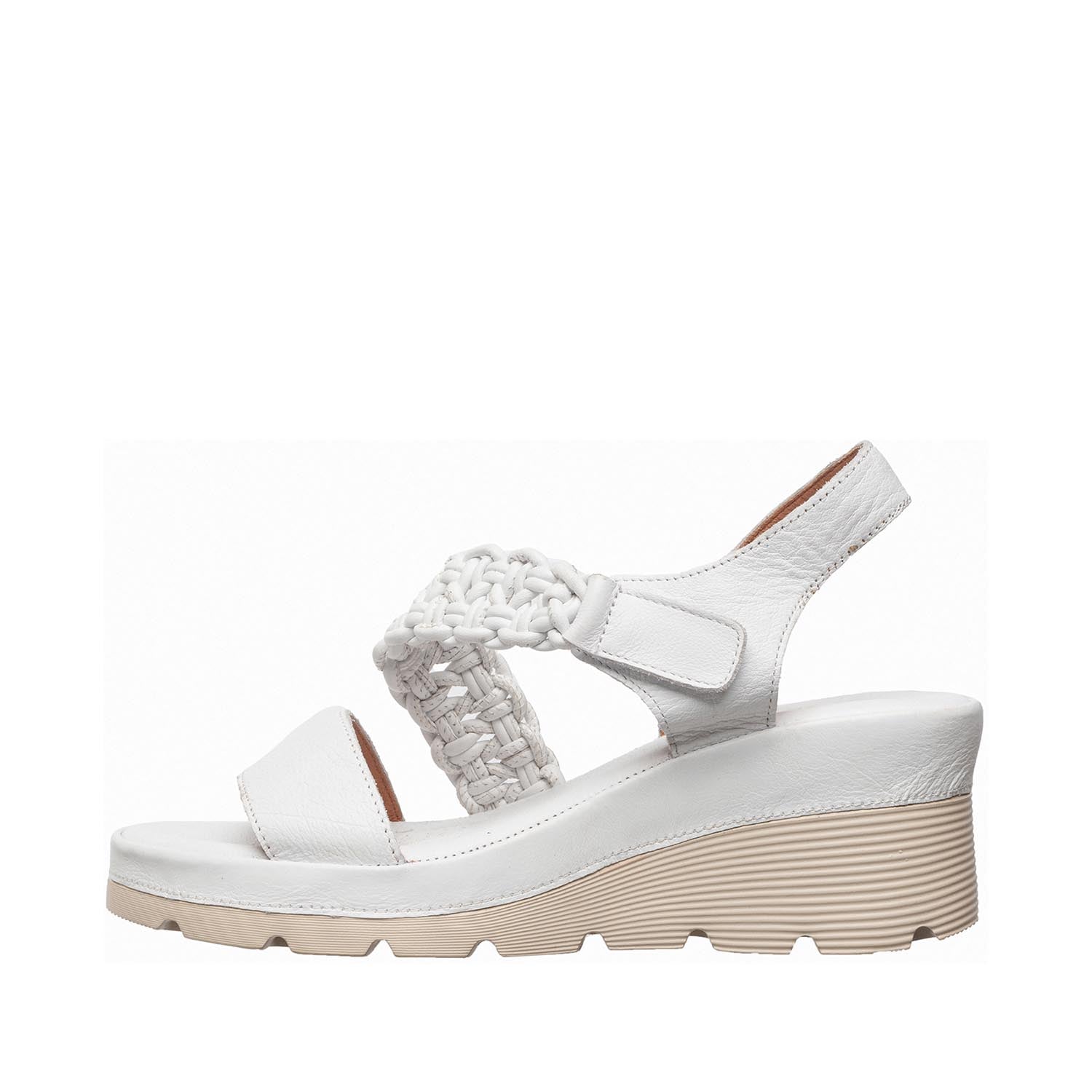 Womens White Leather Wedge Sandals Braided Strap Comfort Style