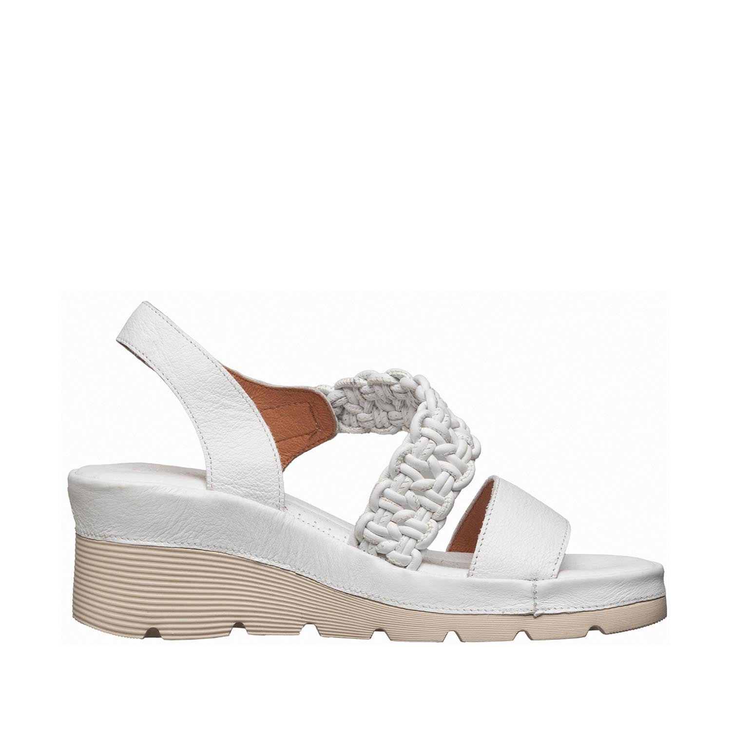 The S71 Jemma brings womens white leather wedge sandals braided strap comfort style to every warm-weather occasion. Handcrafted from fine quality leather in a soft make-up tone, this simple slide features an intricately woven upper that cradles the foot while a latex-cushioned insole coated in smooth, breathable leather keeps each step comfortable from morning to evening. Standing at a 2.0-inch wedge height, the Jemma adds a refined lift without compromising stability — a versatile pair that moves effortlessly from cobblestone streets to weekend gatherings, pairing easily with any outfit.